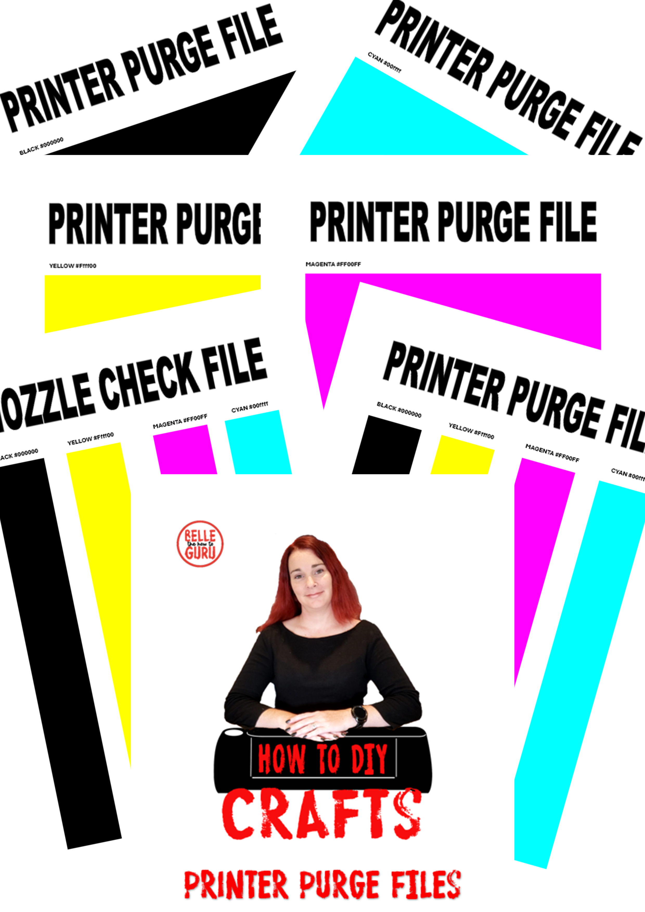 Printer purge files are specially designed documents used to unclog and clean the printheads of inkjet printers, sublimation printers and even DTF printers. These files contain patterns of solid colors (cyan, magenta, yellow, and black) that help to clear out any blockages in the printer nozzles. By printing these files, you can ensure that the ink flows smoothly and evenly, preventing streaks and missing lines in your prints.